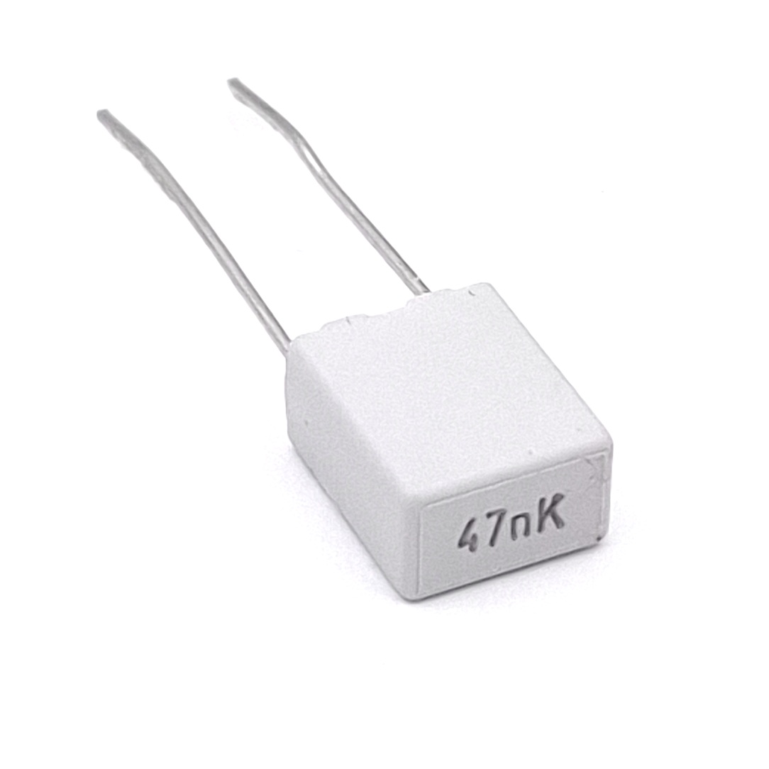 Polko polyesterikondensaattori 47 nF/250V, r. 5 mm, toleranssi 10%, Evox Rifa MMK5 - valmistettu Suomessa
