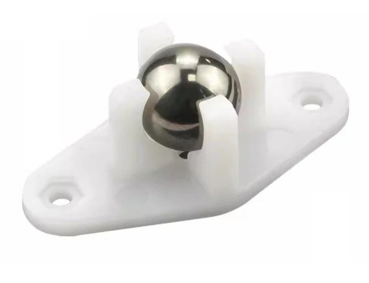 Tuote 111106. Pallolaakeri pallorengas metallia muovisessa "salmiakki" kehyksessä. Käytetään roboteissa ja muissa liikkuvissa laitteissa. Koko n. 24 x 50 mm, pallon halkaisija 15 mm. Kiinnitysreikien väli n. 40 mm.
