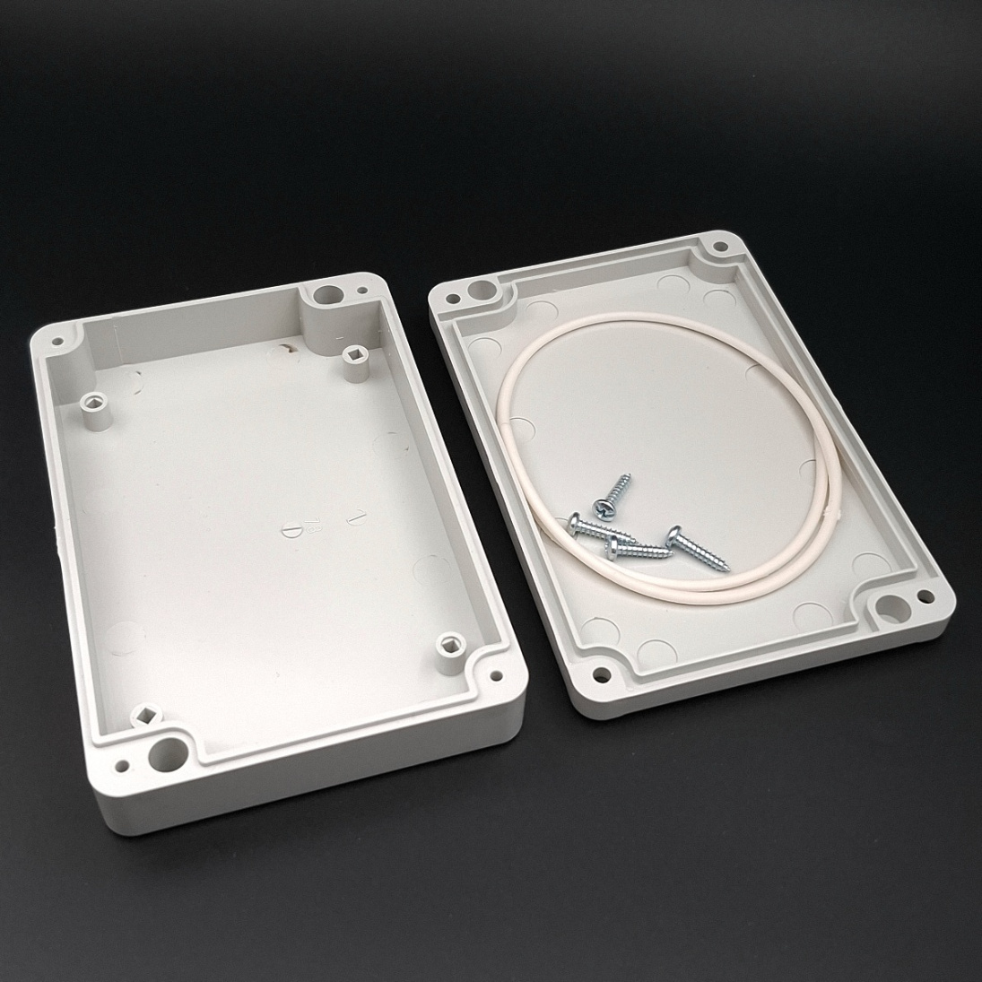 Elektroniikan laitekotelo tiivistenauhalla ja seinäkiinnitystrei'illä, Vaaleanharmaa ABS- muovikotelo BOX 12A. Erittäin tukevaa tekoa, materiaalipaksuus min. 3mm, tästä kotelosta saa tehtyä myös kosteutta kestävän laittamalla mukana seuraavan tiivisteen kannen ja alaosan väliin. Kaikki kiinnitysreiät sijaitsevat kannen ja kotelon liitoskohdan ulkopuolella, myös seinäkiiinnitysreiät. Ulkomitat n. 26 x 80 x 120 mm. Hyvä esimerkiksi seinäasennukseen, ulo ym. Muovikotelo.