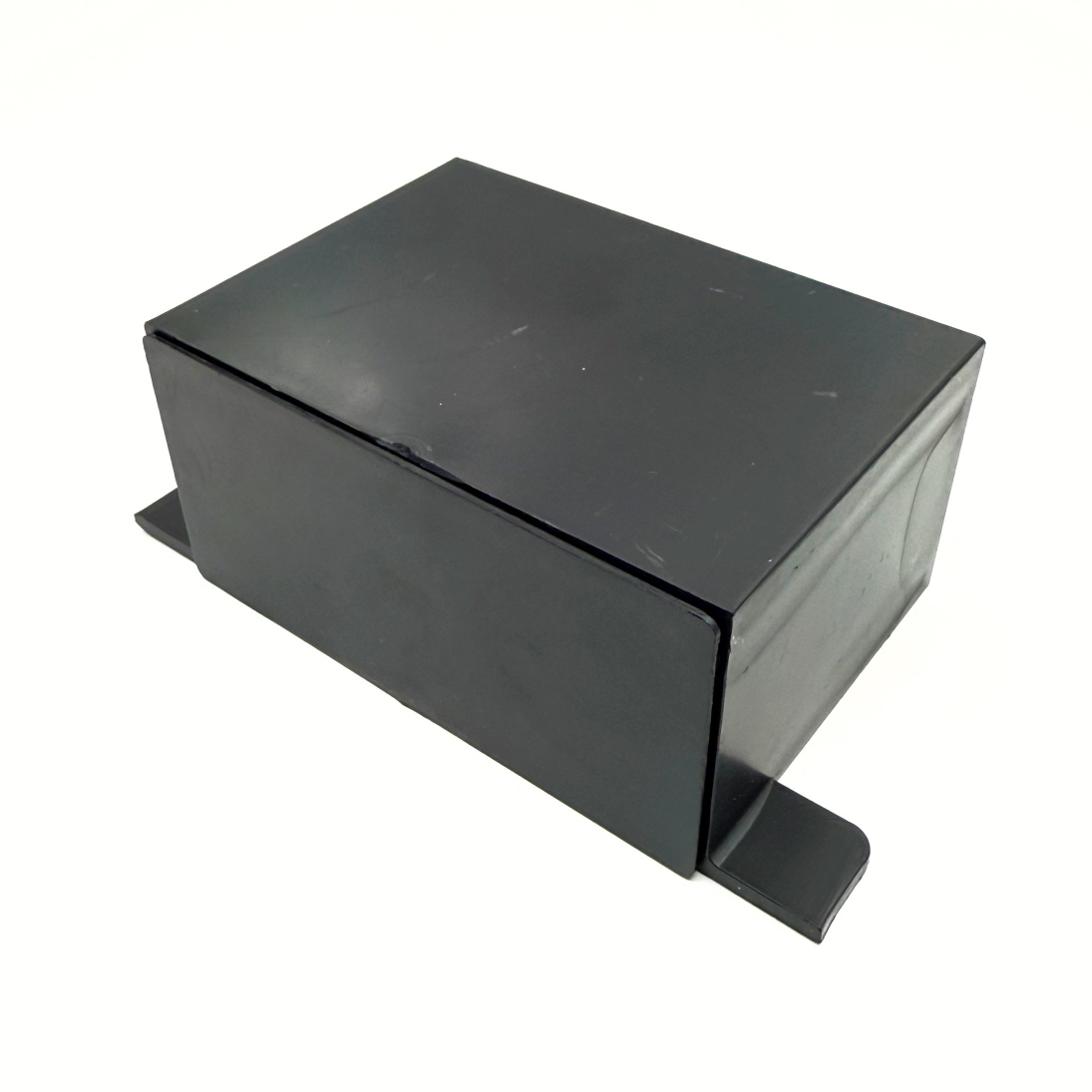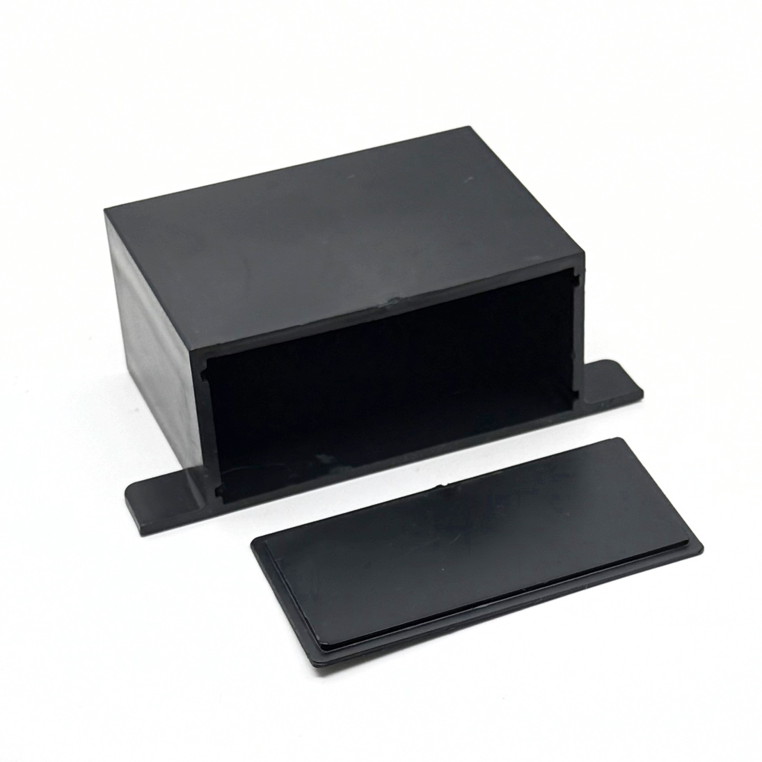 Laitekotelo 27 musta, muovia, kiinnityskorvakkein. Etulevyn kiinnitys "snap in" ja varmistus vaikkapa pikaliimalla. Kaksi piirilevy uraa. Hyvä kotelo pienille rakennelmille. Materiaalipaksuus n.2 mm, kiinnitysreunukset ei mukana mitoissa. Koko n. kork. 34, lev. 70, syv. 50 mm. Mittakuva/pdf