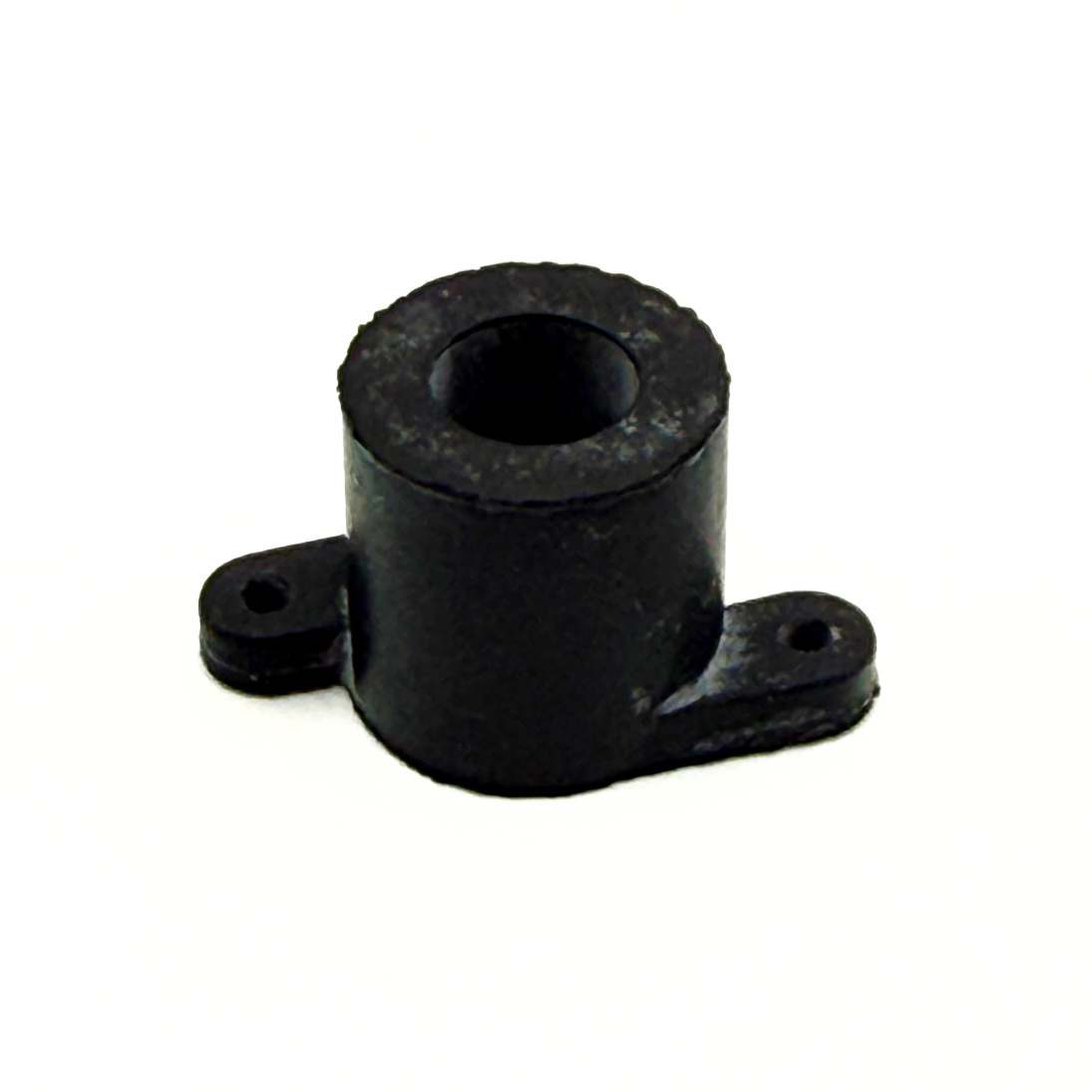 Tuote 109913. Musta kuminen elektreettikapselipidin 6 mm kapseleille. Panasonic YPM-CH021 kumipidike. Sisäreikä halk. 5mm, korkeus 10mm, kiinnitysreiät sivuilla.