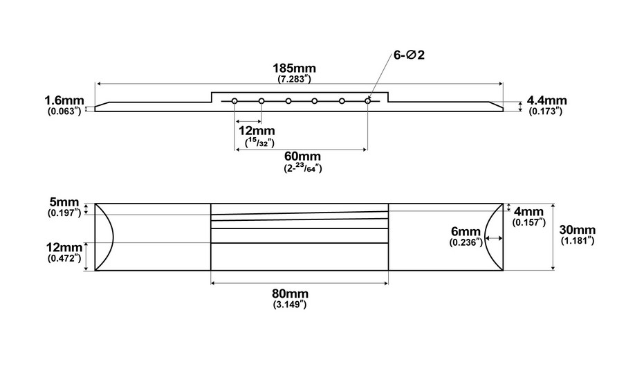 Kieliurallinen, muotoiltu, valmis luusatula klassiselle kitaralle. Pituus 52mm Paksuus 6mm Korkeus 9.0 / 8.5mm