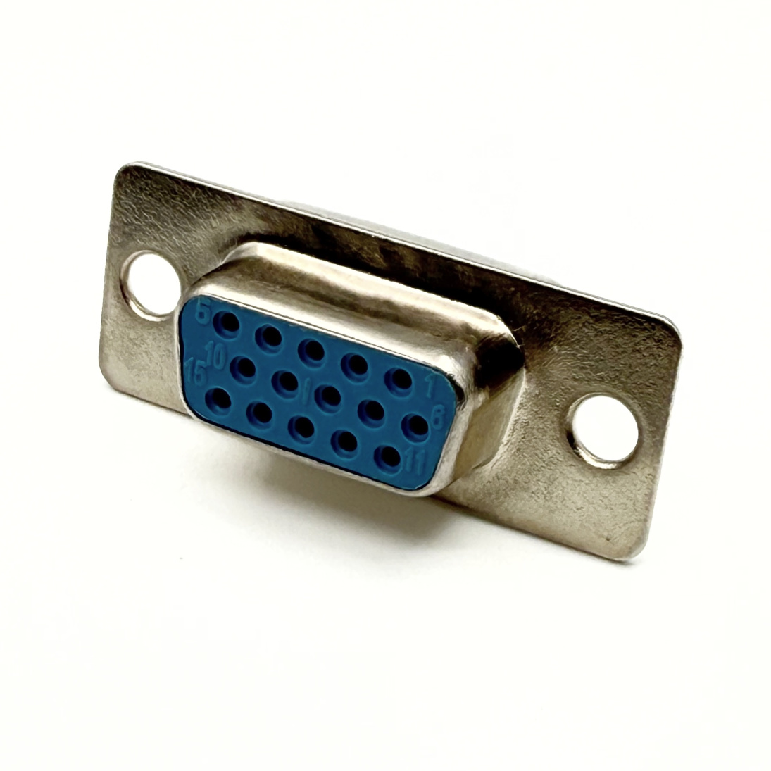 Kolmirivinen D-liitin 15pin naaras, High Density (VGA). Juotettava.