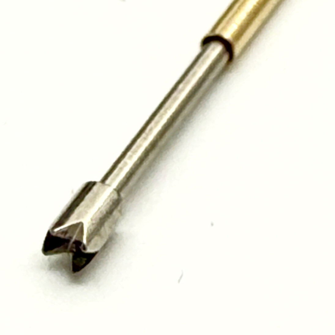 Tuote 101276. Testineula testipiikki nro:4 rungon halkaisija 1.35 mm kullattu jousitettu teräväpäinen piikki. Pituus...