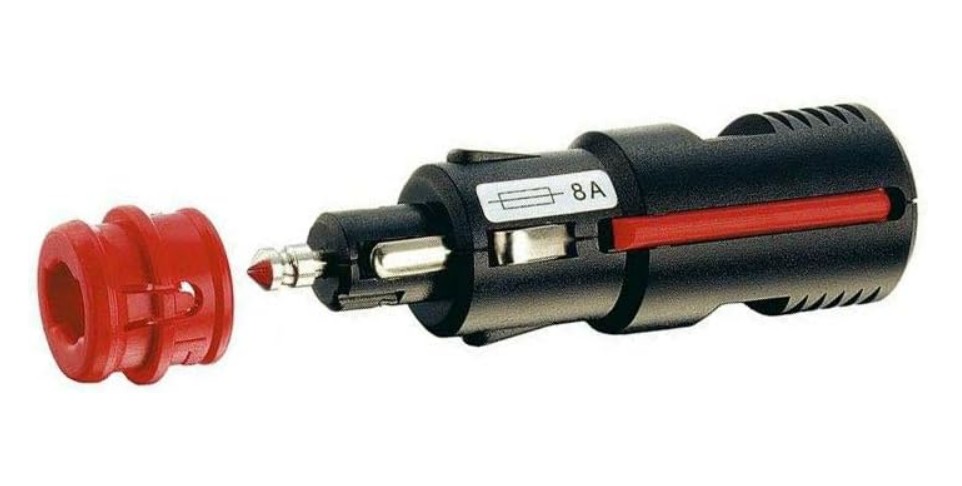 Tuote 114114. Pistoke DIN tupakansytyttäjä / "Hella" pistoke 8A sulake sisällä. Made in Germany. Ruuvattavat liitokset, max 2.5mm2 kaapelille. 12 - 24VDC. Sopii tupakansytyttäjään ja siihen ennen vanhaan Hella liittimeksi sanottuun monissa autoissa, asuntovaunuissa, asuntoautoissa, veneissä jne ... standardiliittimenä olevaan vastakappaleeseen. Punainen päätyosa irtoaa pyöräyttämällä sitä kevyesti vastakkaiseen suuntaan kuin nuoli osoittaa ja vetäisemällä ulospäin, kiinnitys päivastaisessa järjestyksessä. Nuolen kuvat punaisessa kappaleessa. Tup syt.