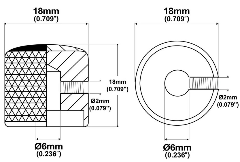 Metallinuppi black 18 x 18.5 FDNUPBK ruuvikiinnitys. Full dome (pyöristetty yläosa), ruuvikiinnitys, 2mm kuusioavaimella.