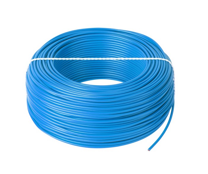 Tuote 22694. Asennusjohto monisäikeinen sininen 0.5 mm² 100m kieppi. PVC H05V-K. 300/500V, 70 astetta max.