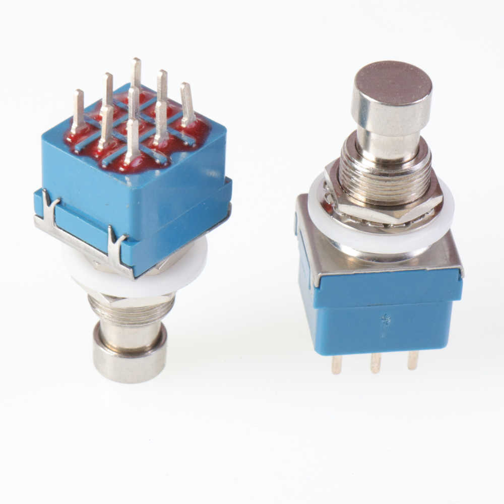 3xON-ON "true bypass" latching kytkin, piirilevyjaloilla. Asennusaukon halkaisija 12mm.