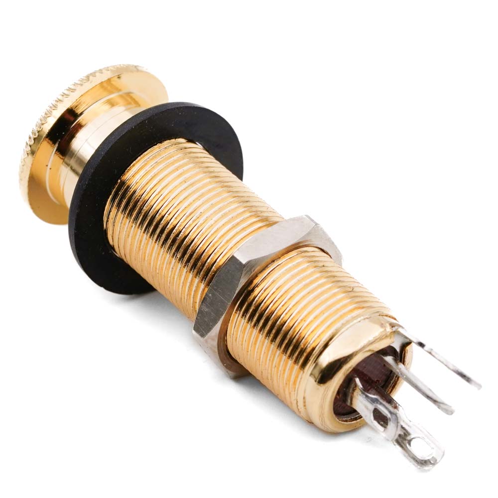 6.3 mm stereojakki kytkimellä, pitkällä kierteellä, ei hihnanuppia, kulta - KJ63GD. Voidaan johdottaa joko stereoksi tai monoksi.