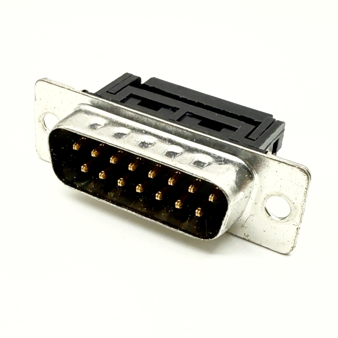 D-liitin 15pin uros, nauhakaapeliin puristettava.