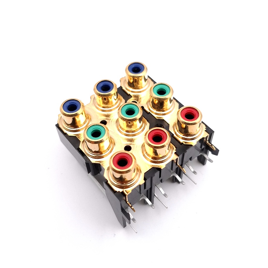 Kullattu RCA paneeli piirilevylle 9 -osainen 3 x PU / 3 x VI / 3 x SI RGB värit.
