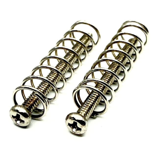 Humbuckerin kiinnitysruuvi ja -jousisetti, sisältää kaksi ruuvia ja kaksi jousta.