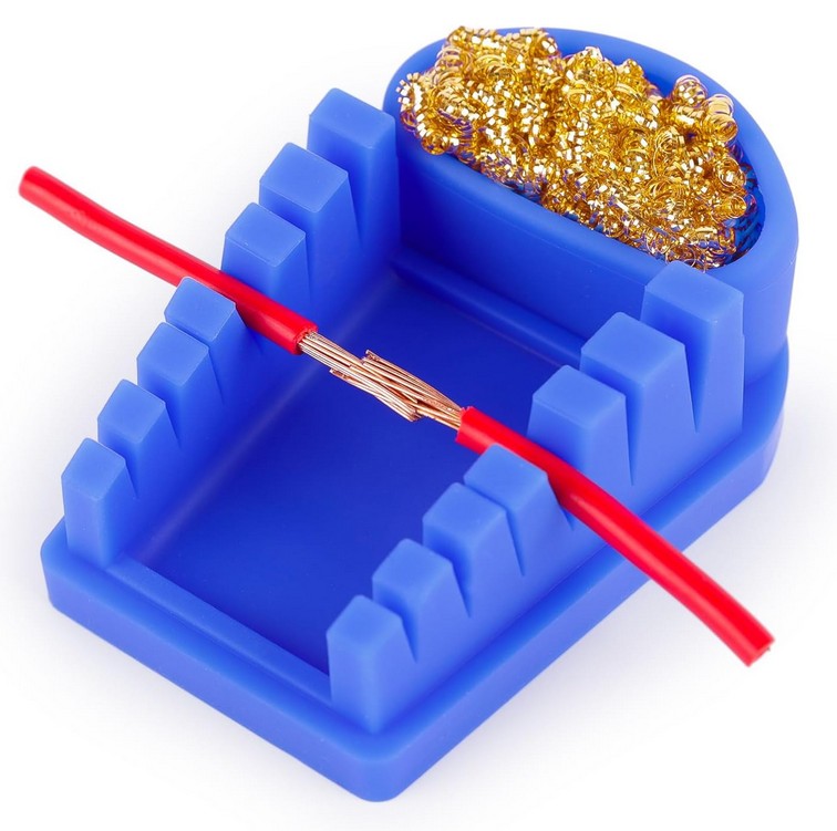 Käytännöllinen juotosteline, joka helpottaa johtojen juottamista ilman, että niitä tarvitsee pidellä käsin. Kestää korkeita lämpötiloja.