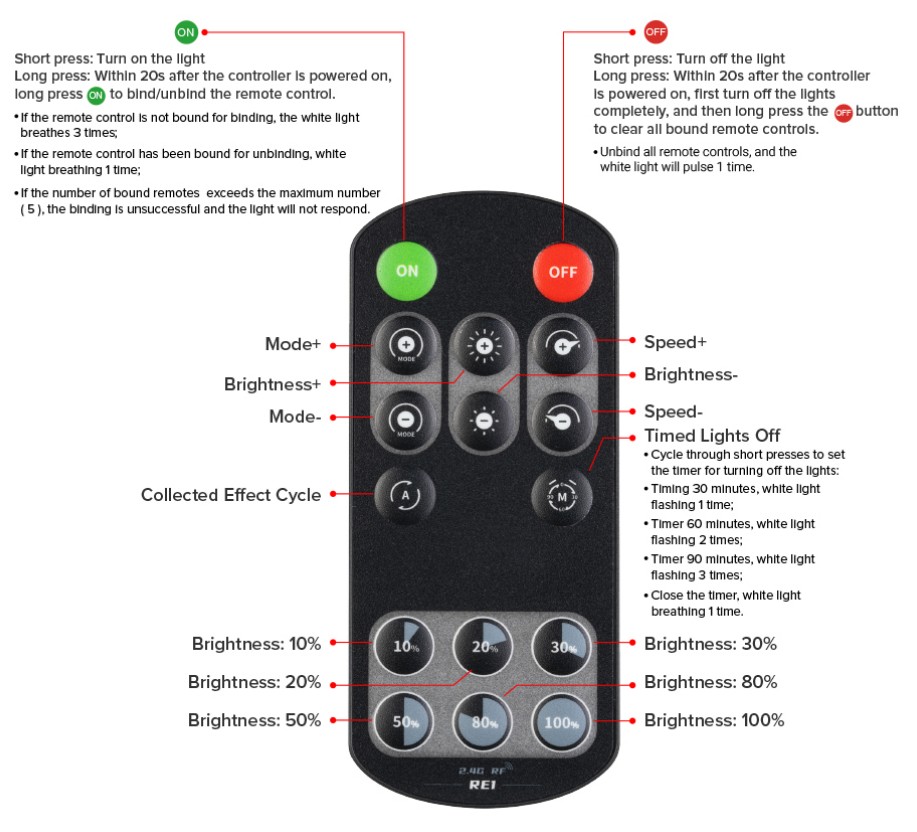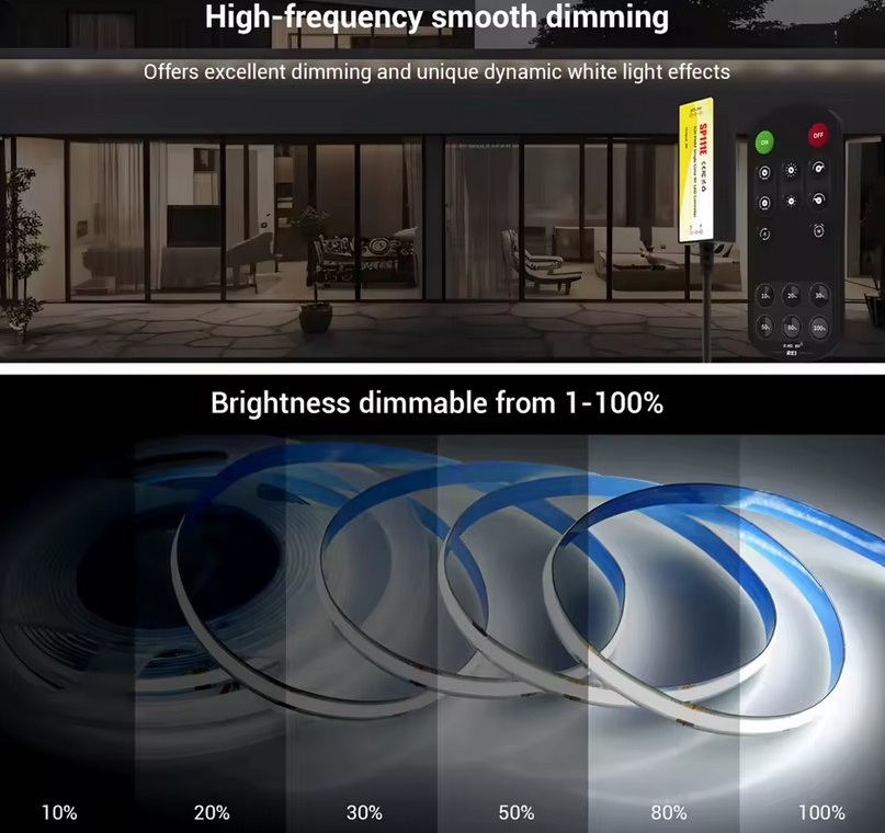 Yksikanavainen PWM LED-ohjain, joka ansiosta yksivärisen LED-valaistuksen säätö on tasaista ja tarkkaa. Korkeataajuinen 16kHz himmennystekniikka poistaa välkkymisen, ja kirkkaudensäätö on pehmeää. 2,4 G RF-kaukosäädin tarjoaa jopa 30 metrin langattoman ohjausetäisyyden, ja sisäänrakennetut dynaamiset valkoisen valon tehosteet tuovat vaihtelua valaistukseen.