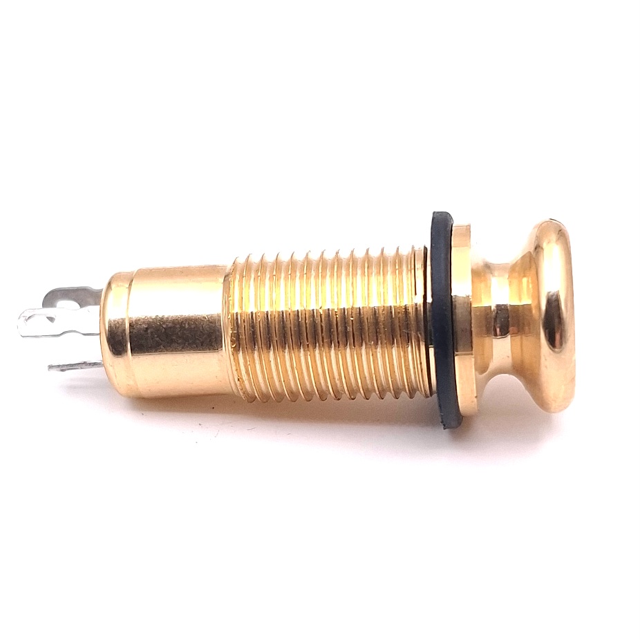 Stereojakki 6.3 mm hihnanupilla, kulta, puuhun kierrettävä, tiheä kierre