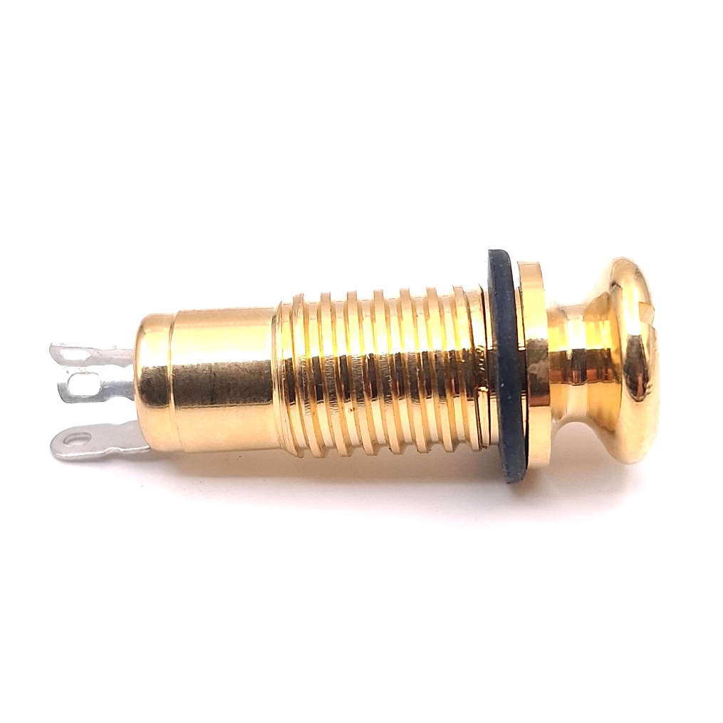 Stereojakki 6.3 mm hihnanupilla, kulta, puuhun kierrettävä, harva kierre