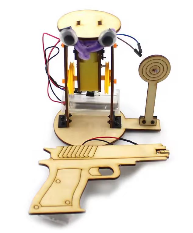 Oikein kasattuna rakennussarjasta valmistuu tarkkuusammuntapeli - kun laserpistoolin säde osoittaa maalitauluun asennettuun vastaanottimeen, alkaa hirviö liikkumaan!