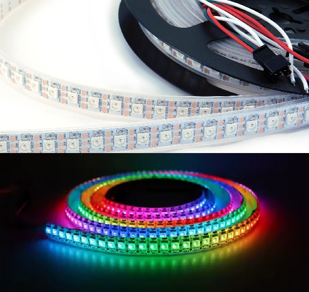 - RGB-nauha yksittäin ohjattavilla ledeillä