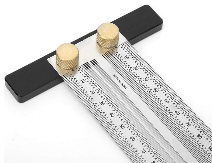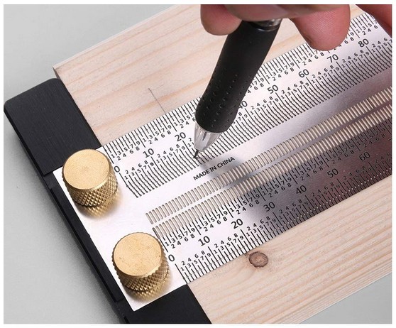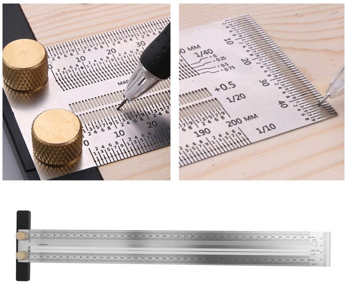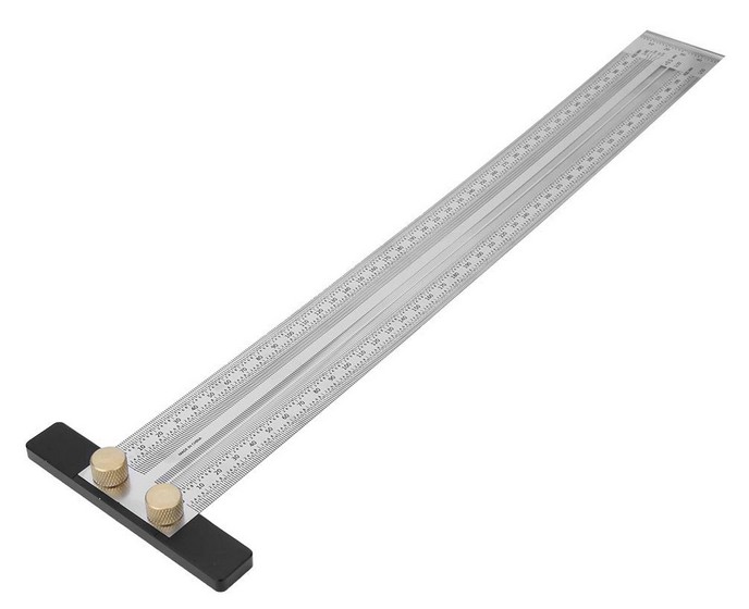 Tarkkuutta vaativaan puuntyöstöön suunniteltu T-mallinen merkintäviivain soveltuu erityisesti reunoja ja kulmia vasten mittaamiseen.