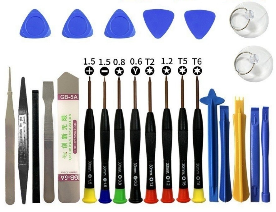Älypuhelimen, kännykän korjaustyökalusetti. Paljon erillaisia avaustyökaluja erilaisille kuorille. 25 -osainen.