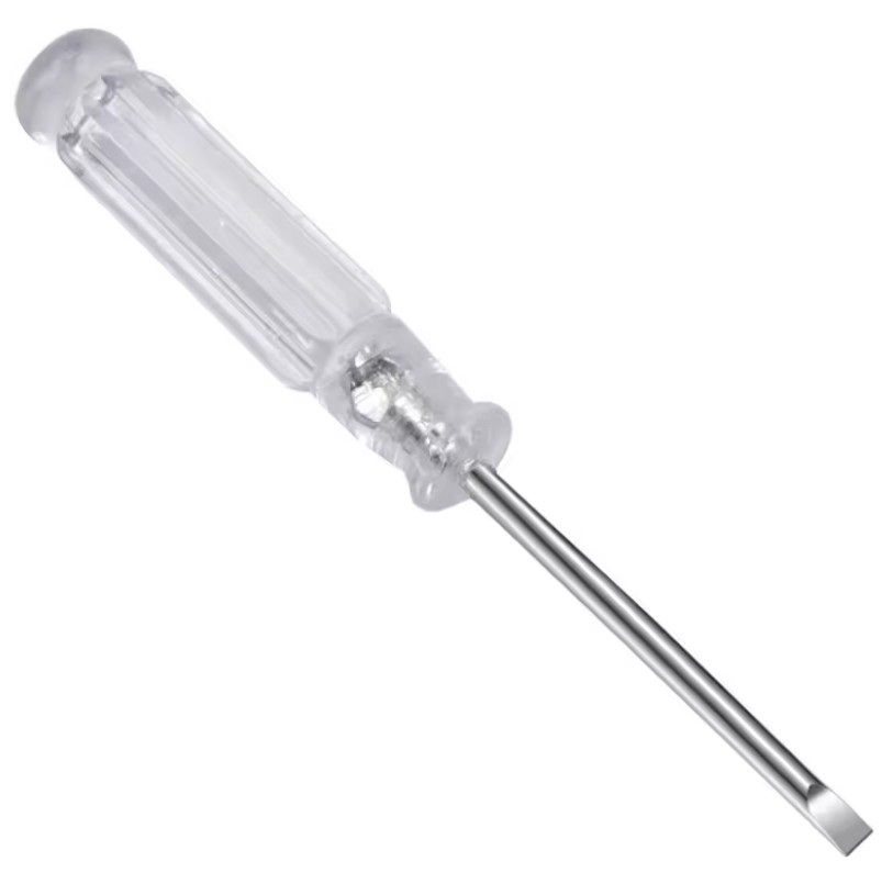 Talttapää ruuvimeisseli, terän leveys 3mm. Ruuvimeisselin kokonaispituus 120mm. Kädensija kovaa, läpinäkyvää muovia. Kätevä varsinkin sokeripalojen ja muiden pienten ruuviliittimien kanssa puuhastellessa.