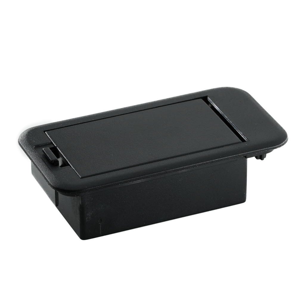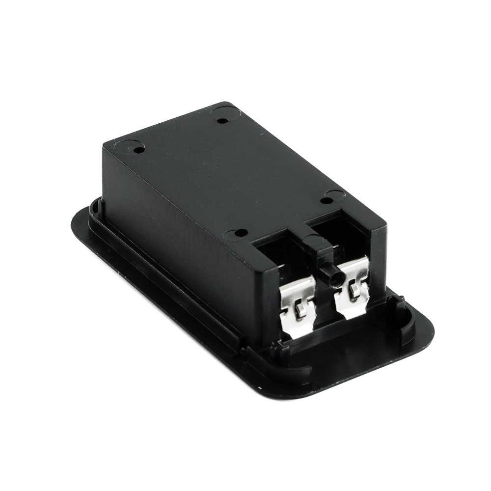 Paristokotelo 9V paristolle, upotettava malli. Saranoitu kansi klipsillä. Esimerkiksi kitarakäyttöön. Ei kiinnitysruuveja mukana.