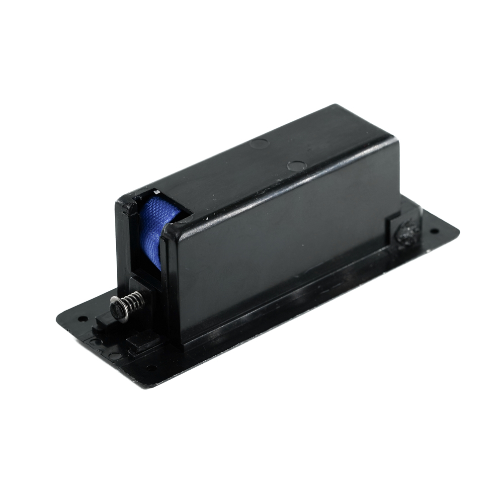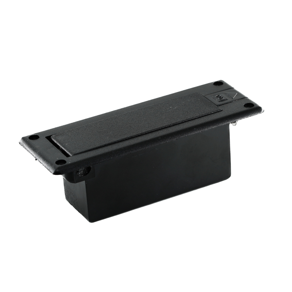 Paristokotelo 9V paristolle, upotettava kapea malli. Saranoitu ja jousitettu kansi. Esimerkiksi kitarakäyttöön. Ei sisällä kiinnitysruuveja eikä paristonepparia.