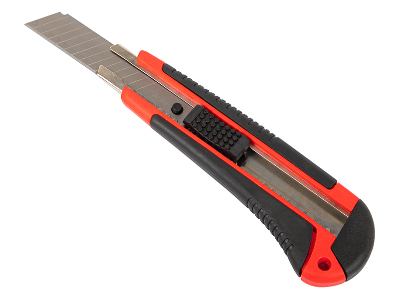 Yleiskäyttöinen 18 mm:n katkoteräveitsi soveltuu monipuolisiin leikkaustöihin niin kotona, työmaalla kuin harrastekäytössä.