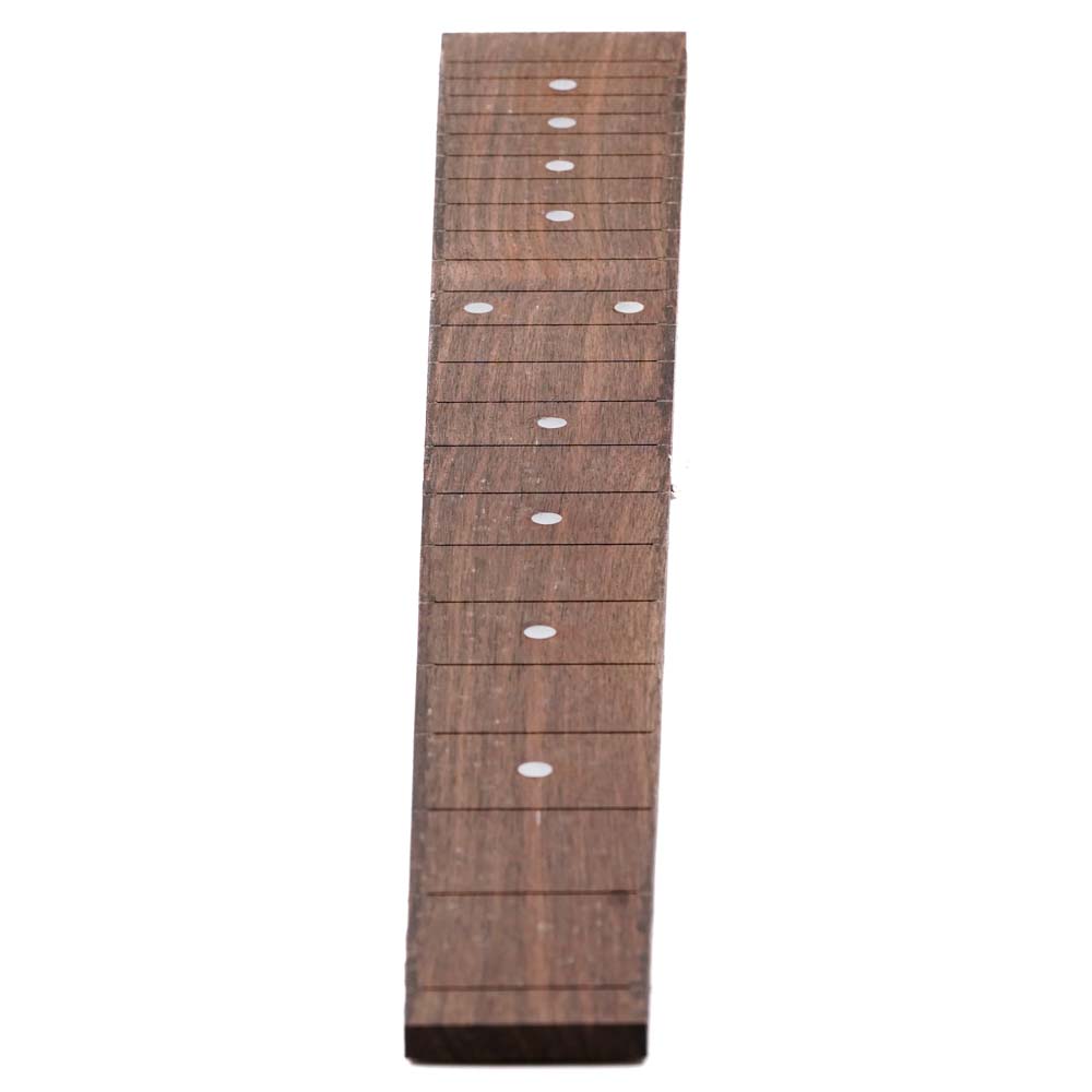 Laurel / laakeripuinen otelauta-aihio valmiilla nauhaurilla, 25.5" mensuuri, 22 nauhauraa. Vaaleat ⌀ 6 mm helmiäisupotukset ja valkoiset sivudotsit asennettu valmiiksi.