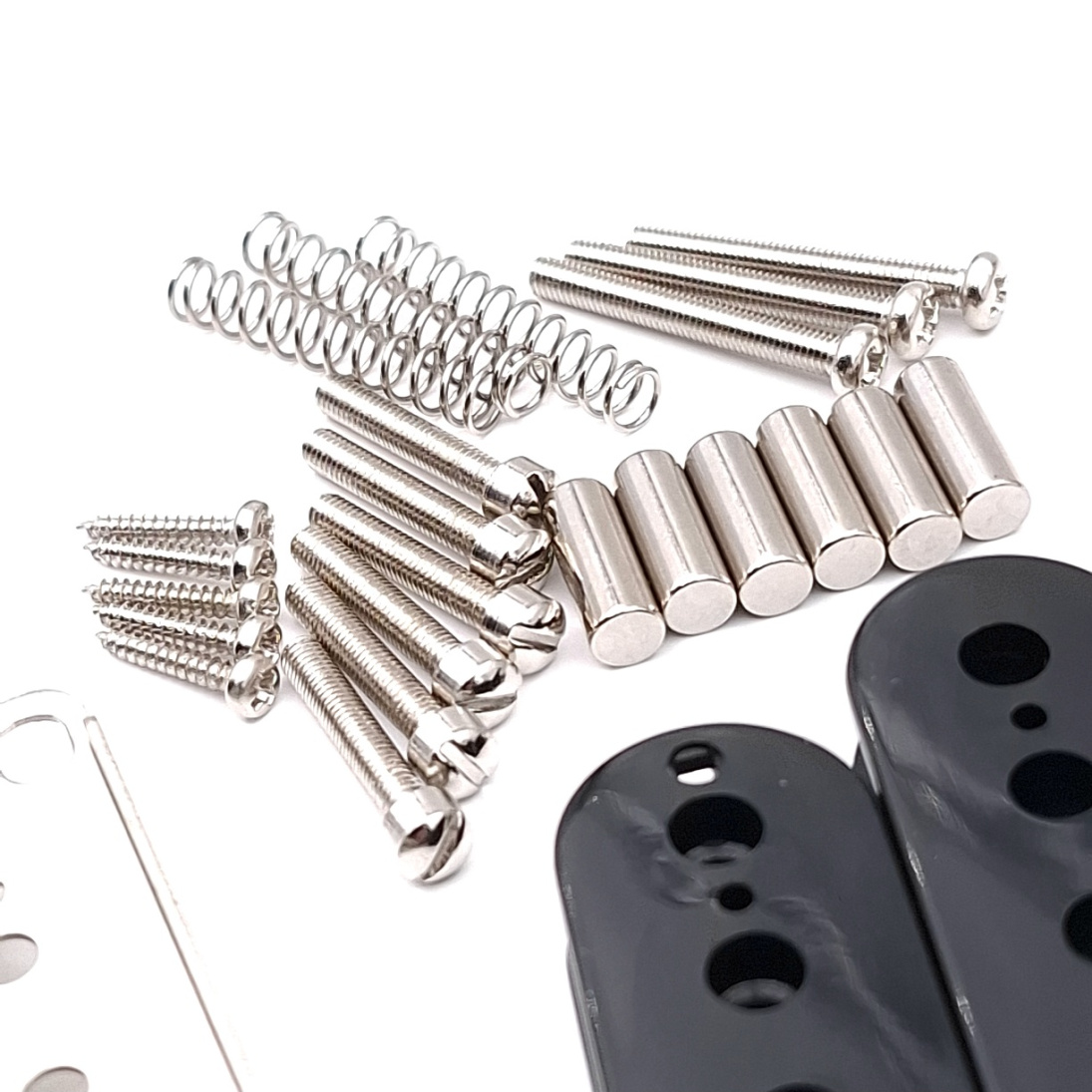 Setissä on mukana tarvittavat osat humbuckerin rakentamiseen poislukien käämilanka, juotostina ja mahdollinen vaha.