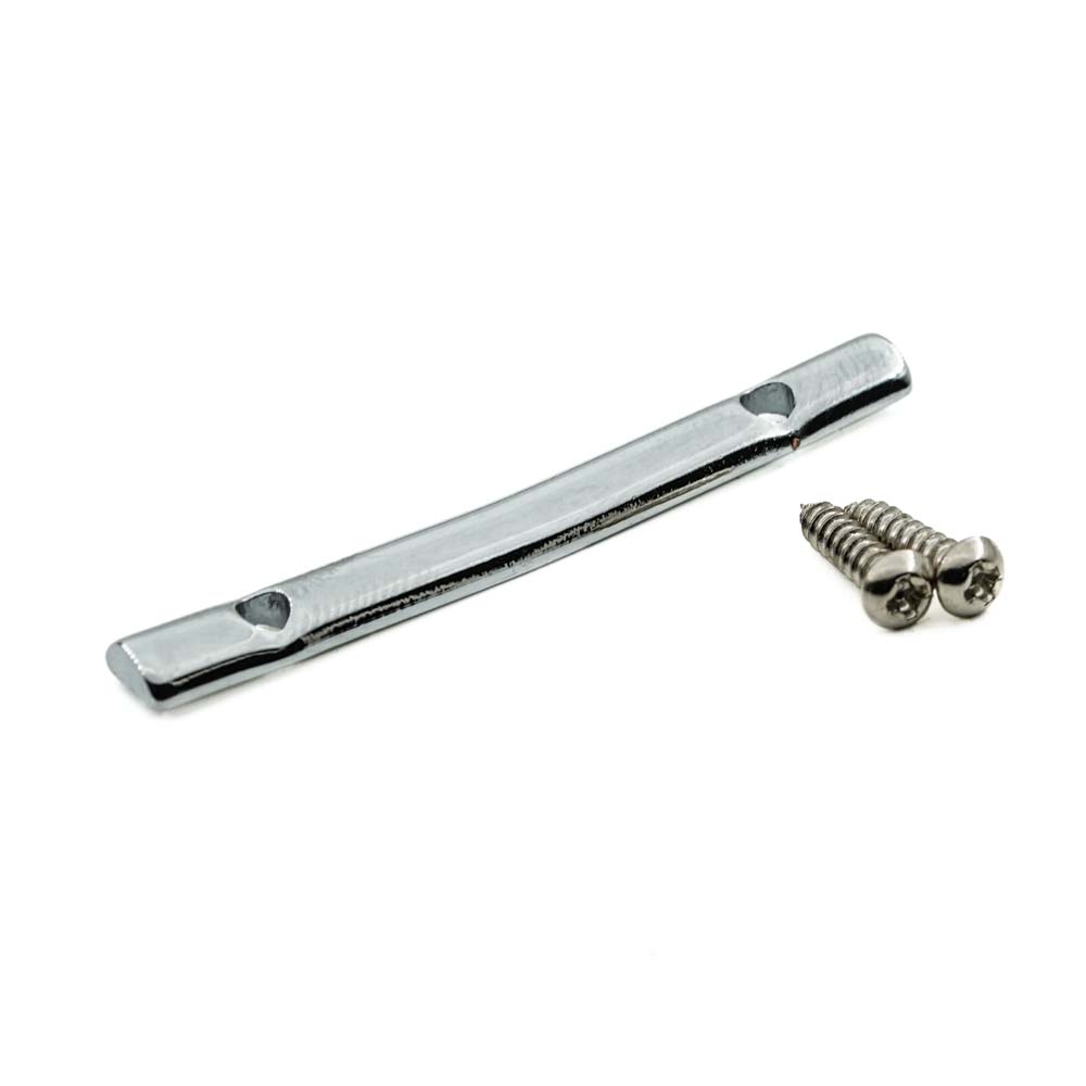 Tension bar -tyyppinen kielten alaspainaja, kromi. Kevyesti taivutettu, kuusikieliselle sähkökitaralle.