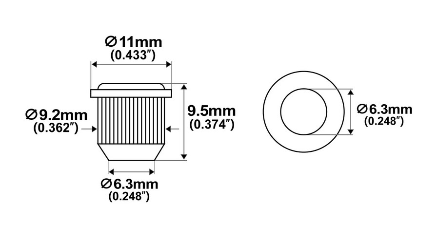 Virityskoneiston holkki, tuner bushing, nikkeli