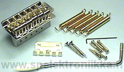 Tremolo (vibra) kuusikieliselle kitaralle, teräs. Mukana talla, blokki, kampi, ruuvit, jouset ja jousikiinnike.