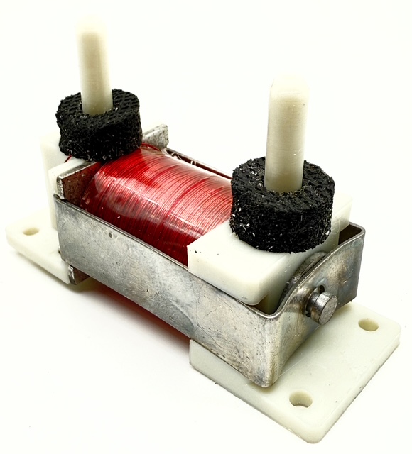 Magneettiventtiili 12V "kaksitieventtiili", kontaktit esim. piirilevylle. Laipassa neljä kiinnitysreikää halk. n. 3 mm. Laippa 25 x 70 mm. Kun jännitettä ei ole käämissä, kulkee ilma / kaasu / (tai neste) liittimien kautta. Kun jännite on käämin navoissa kulkee virtaus päädyssä olevan pienireikäisen suotimen ja sen vieressä olevan liittimen kautta. Liittimiin sopii sisähalkaisijaltaan n. 5mm letku. Käämin vastus n. 35 ohm, mäntä liikkuu vielä n. 8VDC jännitteellä, silloin virrankulutus on n. 200 mA, 14VDC / n. 400mA.